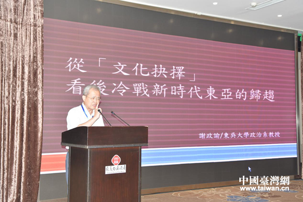 東吳大學政治系教授謝政諭作主題演講。(圖片來源:四川省臺辦)