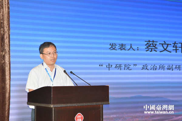 臺灣“中研院”政治所副研究員蔡文軒作主題演講。(圖片來源:四川省臺辦)
