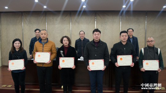 頒發(fā)公務(wù)員獎勵證書。(圖片來源:四川省臺辦)