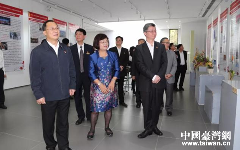 廣州市委臺(tái)辦主任曾衛(wèi)東同志陪同市委常委、統(tǒng)戰(zhàn)部長(zhǎng)盧一先同志和臺(tái)灣苗栗縣大湖鄉(xiāng)鄉(xiāng)長(zhǎng)胡娘妹觀看展覽。(圖片來(lái)源:廣州市臺(tái)辦宣傳交流處)