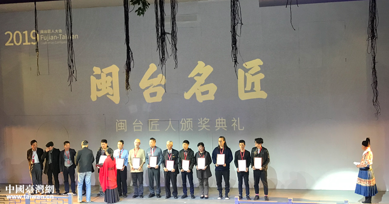 為閩臺匠人中的杰出代表頒發“閩臺名匠”等相關榮譽稱號證書。(圖片來源:福州市臺港澳辦)