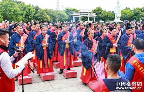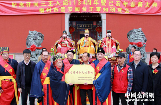 中國臺灣網4月18日福州訊 4月11日,以“緬懷祖德 澤被兩岸”為主題的2019年閩王春祭大典暨“福建省對臺交流基地”掛牌儀式在福州市晉安區新店鎮閩王文化園舉行,200多名閩臺鄉親共祭開閩三王。