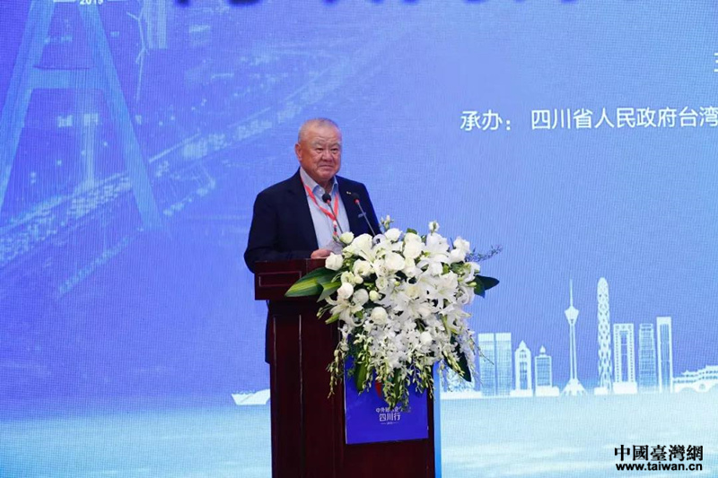 臺(tái)灣工商協(xié)進(jìn)會(huì)理事長(zhǎng)和臺(tái)玻集團(tuán)董事長(zhǎng)林伯豐致辭。(圖片來(lái)源:四川臺(tái)辦)