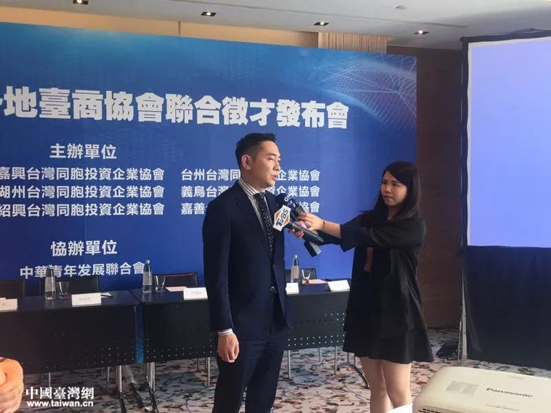 發(fā)布會主持人、敏實集團(tuán)員工接受采訪。(圖片來源:浙江省臺辦)