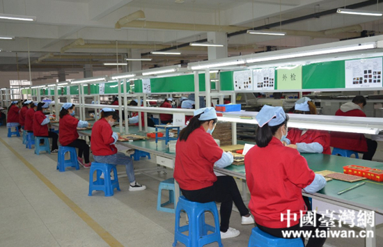 漢中銳杰電子有限責任公司生產車間一派繁忙景象。 (中國臺灣網 發)