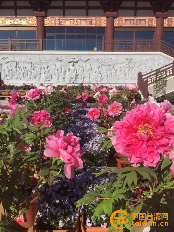 菏澤牡丹綻放日本佛光山法水寺(圖片來源:山東省臺港澳辦)