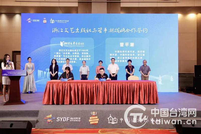 活動現場,還進行了“IP直通車”一周年回顧、新聞發布會、IP直通車簽約儀式、IP主題分享、圓桌論壇等環節。臺灣時報文化出版社董事長趙政岷,大陸網絡作家管平潮、蔣勝男,浙江文藝出版社副總編柳明曄,臺青網絡作家周百祥,創業臺青余紀萱和杭州市作家協會秘書長、杭州市網絡作家協會秘書長陳曼冬等嘉賓圍繞“IP影視化改編運營”,進行了精彩發言。在周百祥看來,精品IP的主題就是泛娛樂,“未來的創作者們不能只是埋頭寫故事,而要從動畫公司或游戲公司的角度出發去思考,提前規劃好寫作對象能否開發。”在余杭徑山鎮從事文旅IP開發的余紀萱則將兩岸茶文化和自我興趣結合,助力當地開發中國千年禪茶文化。“未來文學IP融入鄉村振興大有可為,通過在景區重現小說畫面,讓文學內容實際可觀可感,讓游客在景區有所停留、有所消費,才能激發鄉村活力,帶動鄉村振興!