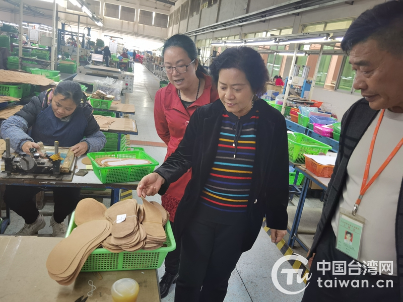 廣西貴港市臺辦主任覃宏在威漢鞋業有限公司調研。(圖片來源:廣西貴港市臺辦)