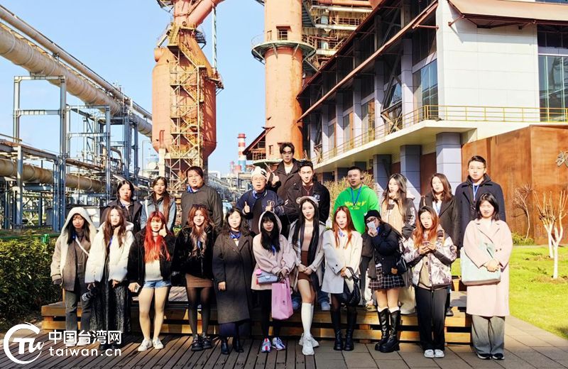臺灣青年自媒體博主一行在武鋼一號高爐國家工業遺址公園合影。(中國臺灣網發)