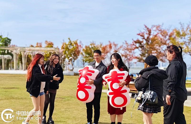 臺灣青年為剛登記的年輕夫妻送上祝福。(中國臺灣網發)