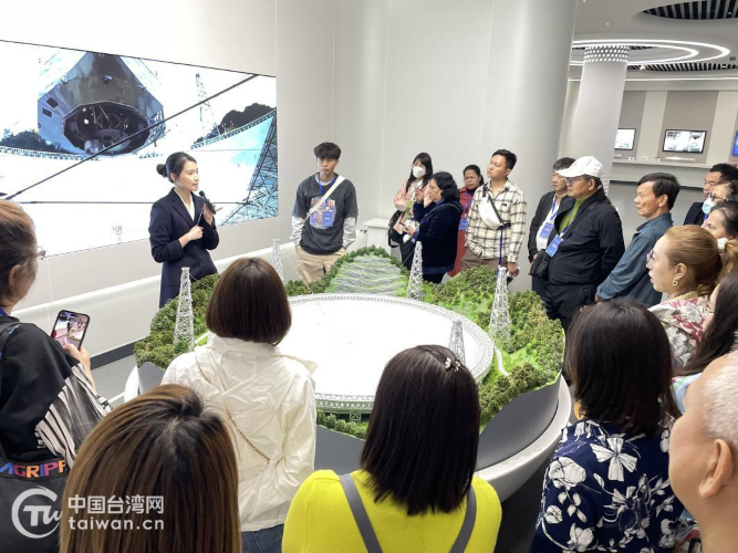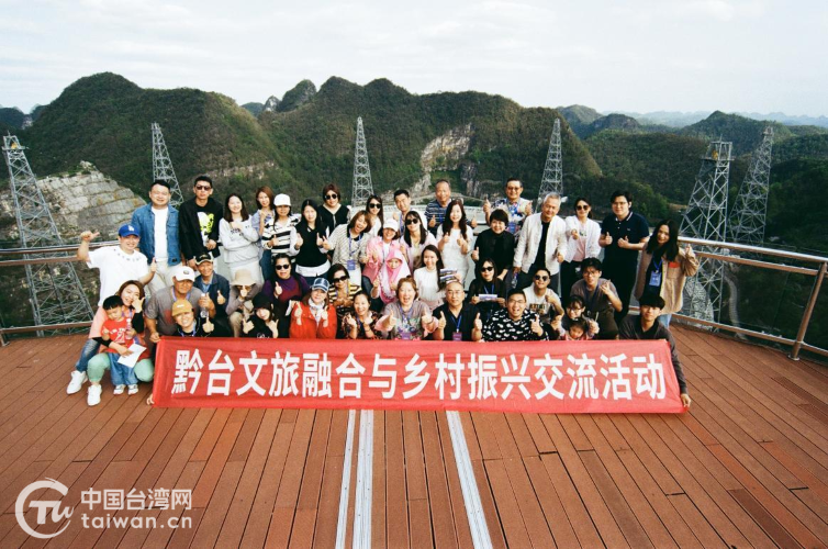 “花開聯(lián)姻·共促發(fā)展”黔臺文旅交流團在“中國天眼”合影留念。(中國臺灣網(wǎng)發(fā))