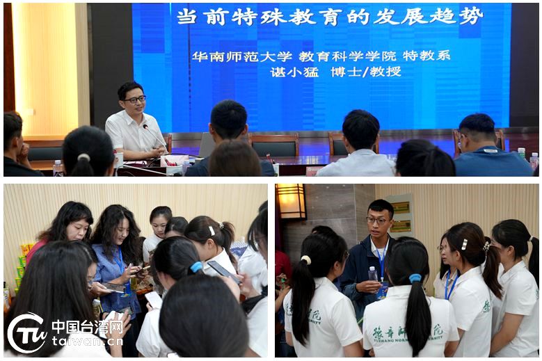 開營現(xiàn)場,華南師范大學(xué)諶小猛教授以“當(dāng)前特殊教育的發(fā)展趨勢”為主題,為在場兩岸師生帶來了一場兼具理論深度與實(shí)踐價值的專題講座。在“兩岸特殊教育發(fā)展經(jīng)驗(yàn)交流會”上,南昌市特殊教育學(xué)校黨委書記張俐,豫章師范學(xué)院左秋芳、黃存泉等教師,臺灣銘傳大學(xué)陳穎君教授等臺方代表分別分享了兩地特殊教育的發(fā)展成果。從大陸特殊教育體系的完善歷程,到臺灣融合教育的創(chuàng)新實(shí)踐,雙方在交流中碰撞思想,現(xiàn)場氛圍熱烈而融洽。