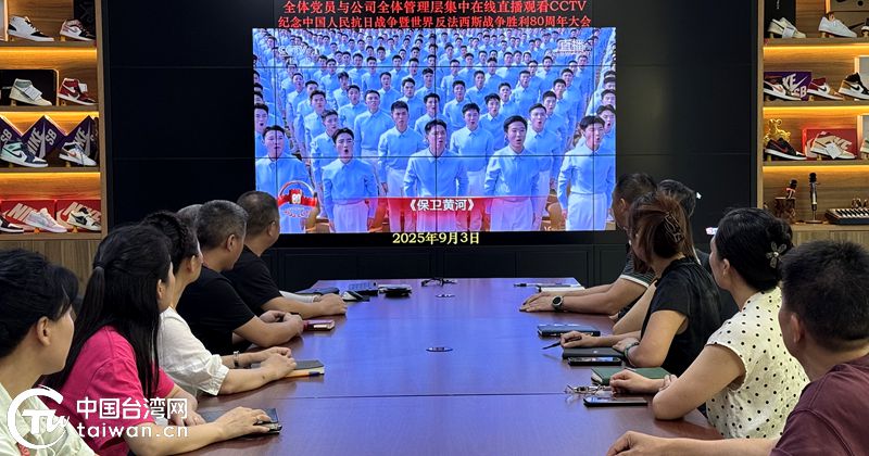 臺企江西廣宥鞋業(yè)有限公司組織觀看閱兵式。(中國臺灣網(wǎng)發(fā))