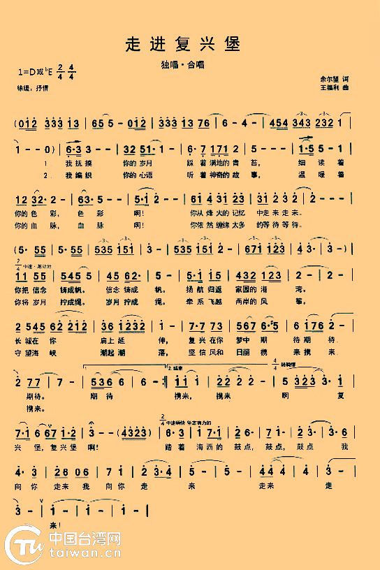 《走進復興堡》歌譜。(中國臺灣網發)