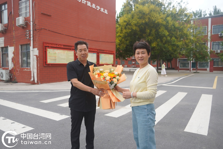 為臺界教師代表送花慰問并交談。(中國臺灣網發(fā))
