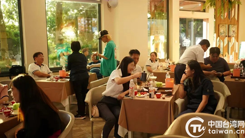 臺(tái)胞受邀聚首海滄豆威咖啡,享受咖啡時(shí)光。(中國(guó)臺(tái)灣網(wǎng)發(fā))