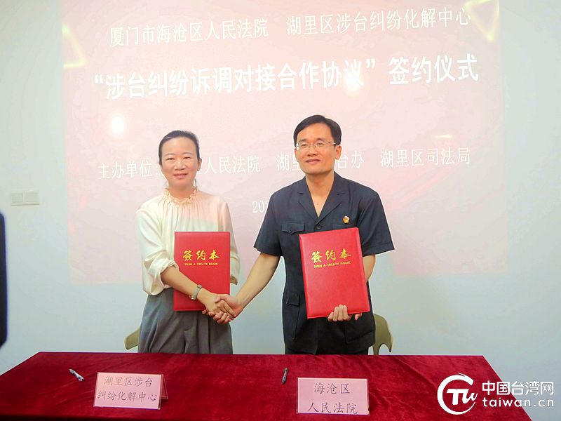 中國臺灣網9月15日訊 近日,湖里區涉臺糾紛化解中心與廈門市海滄區人民法院簽訂涉臺糾紛訴調對接合作協議。