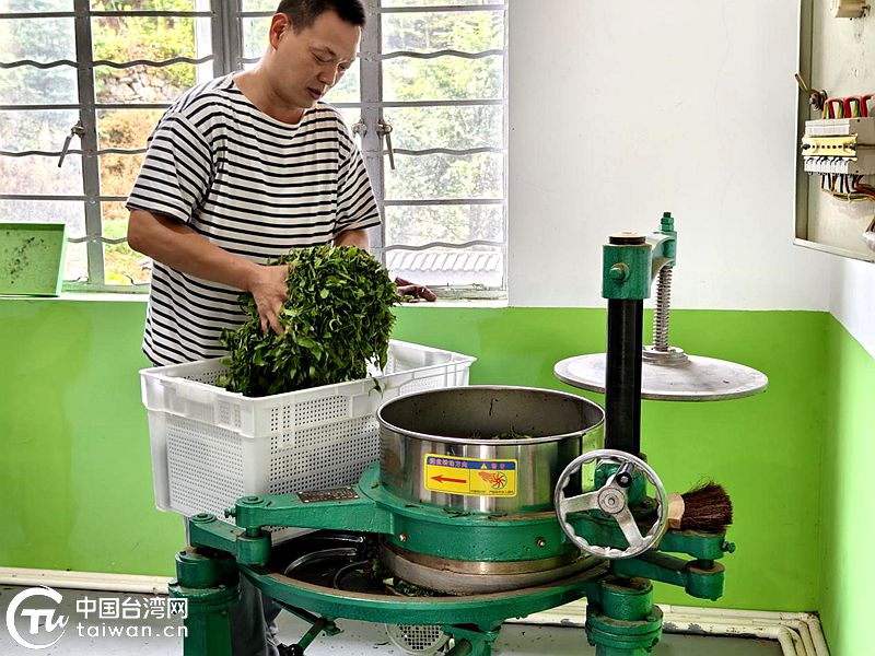 在王崗村的茶葉加工車間,一名制茶工人正忙著進行茶葉烘干作業。(中國臺灣網發)