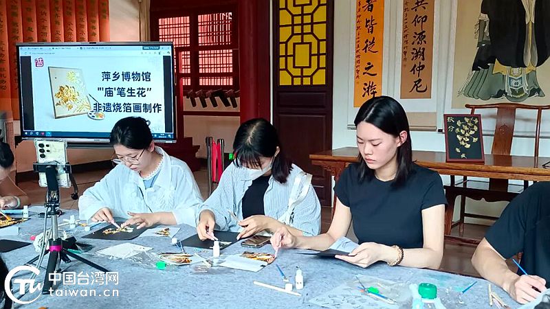 在萍鄉孔廟,青年們在杏學講堂聆聽老師講解“仁義禮智信”的現代意義。在燒箔畫體驗環節,大家以金箔為紙,繪制出一幅幅融合傳統紋樣與個人創意的作品。臺灣青年游芷翎將秋日銀杏的璀璨金黃精心繪于金箔后說:“用傳統燒箔技藝表現二十四節氣的秋分之美,是一次難忘的文化體驗。這不僅讓我感受了燒箔畫的藝術之美,更加深了對傳統文化的理解。”從古窯陶藝到杏學講堂,青年們通過親手體驗和沉浸感知,在創作中深化了對傳統文化的理解,更在協作與交流中建立起真摯的情誼。
