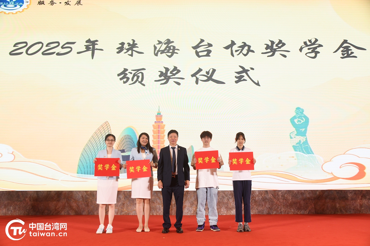 珠海市臺協(xié)會長藍盛義向在珠優(yōu)秀臺籍學(xué)生代表頒發(fā)“珠海臺協(xié)獎學(xué)金”。(中國臺灣網(wǎng)發(fā))