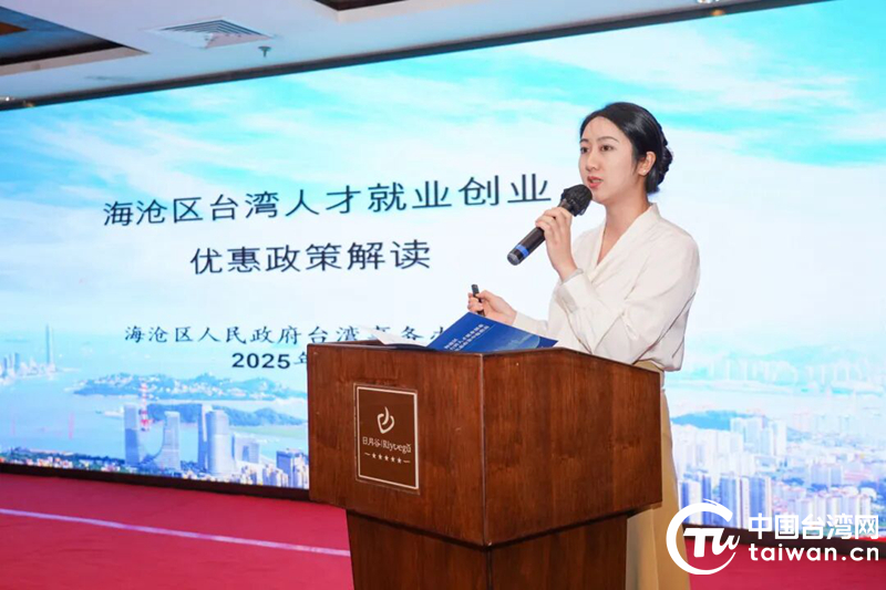 活動現場,海滄區臺辦進行惠臺政策宣講。(中國臺灣網發)