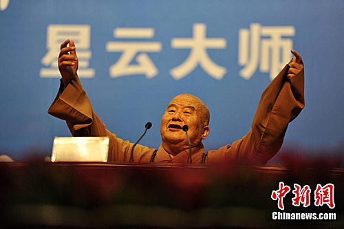 4月5日,星云大師是于廈大九十周年校慶之際,前來廈大參加“走近大師”系列講座,并發表“空有之關系”的演講。中新社發 王東明 攝
