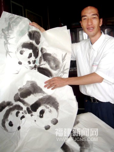 9月24日,福建泉州威遠樓畫家吳培植先生潛心熊貓國畫創(chuàng)作,已經(jīng)畫了78幅“熊貓”作品的他現(xiàn)正在構思一幅10米熊貓長卷。吳培植先生因畫大熊貓與海峽對岸鄉(xiāng)親結緣,他曾為金門縣政府畫《團團圓圓》、《合家歡》贈送給馬英九先生和吳伯雄先生。最近,受臺北有關方面的邀請,吳培植先生將在臺北舉辦“團團圓圓”百幅熊貓畫展。(記者傅丹丹)