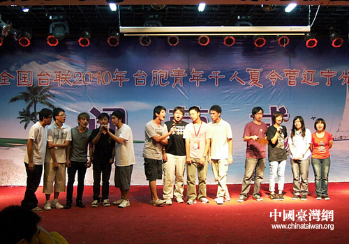 中國(guó)臺(tái)灣網(wǎng)7月22日沈陽(yáng)消息 日前,以“龍脈相傳,青春中華”為主題的“全國(guó)臺(tái)聯(lián)2010年臺(tái)胞青年千人夏令營(yíng)”遼寧分營(yíng)結(jié)束本次遼寧之行,并在沈陽(yáng)舉行了盛大的閉營(yíng)儀式。遼寧省有關(guān)部門(mén)領(lǐng)導(dǎo)王艷文,全國(guó)臺(tái)聯(lián)副會(huì)長(zhǎng)、遼寧臺(tái)聯(lián)會(huì)長(zhǎng)王松先后致辭。