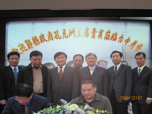 在臺期間,考察團先后拜會了湖北同鄉(xiāng)會鄖縣籍臺胞詹家香、馬顯宗等先生、臺灣省糕餅商業(yè)同業(yè)公會 、實地考察了阿里山茶葉協(xié)會、臺灣愛之味股份有限公司、永全食品器具有限公司、臺灣糕餅食品加工有限公司、臺北石材加工工業(yè)總會等。在與這些企業(yè)負責人進行了座談交流的同時,鄖縣副縣長張毛字與臺灣豐榮食品有限公司簽訂了1億元的休閑食品加工協(xié)議、同臺北石材加工工業(yè)總會簽訂了2000萬元的大理石深加工投資協(xié)議,同嘉義縣木瓜酵素企業(yè)達成了協(xié)議性投資商榷,同時邀請該公司董事長吳先生擇日來湖北鄖縣考察木瓜深加工投資項目。(胡德鮮)