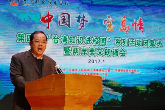 中國臺灣網1月12日河源訊 1月5日晚,河源市“臺灣知識進校園”系列活動閉幕式暨兩岸美文朗誦會在河職院隆重舉行。