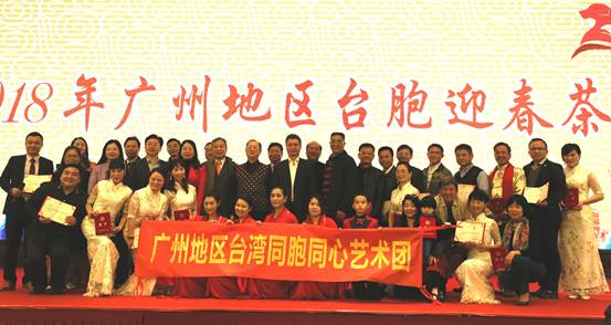 隨后,在穗臺胞、臺商自編自演了合唱、舞蹈和管弦樂等豐富多彩的文藝節目。在當天的茶話會上,廣州臺胞同心藝術團正式宣布成立。廣州地區臺胞同心藝術團由廣州市臺聯發起,省臺盟、省臺聯和市臺盟共同支持籌建的,由具有藝術特長的在穗定居臺胞、常駐臺胞等人員組成,是在穗臺胞自愿加入的文藝團體。目前藝術團成員有30人,分為聲樂隊、舞蹈隊和樂器隊等。