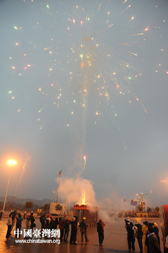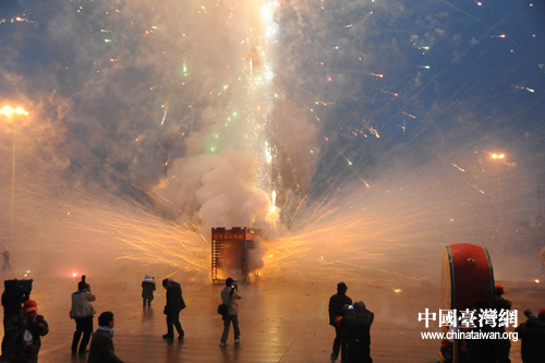 中國臺灣網(wǎng)2月21日賓陽消息 2月20日晚上至2月21日凌晨,廣西南寧賓陽縣城成為世界上最熱鬧的地方,有千年歷史的南寧賓陽炮龍和有百年歷史的臺南鹽水蜂炮同場展演,使整個縣城陷入狂歡之中,幾十萬當(dāng)?shù)鼐用瘛⒅苓叺貐^(qū)游客和臺灣鹽水來的嘉賓在這里體驗了一回“東方狂歡節(jié)”。