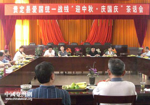 中國臺(tái)灣網(wǎng)9月21日貴定消息 日前,貴州省貴定縣隆重舉行了愛國統(tǒng)一戰(zhàn)線“迎中秋·慶國慶”茶話會(huì)。來自貴定的臺(tái)胞臺(tái)屬代表、僑胞僑眷代表、非公有制經(jīng)濟(jì)人士代表、少數(shù)民族代表、宗教界代表、無黨派人士代表以及統(tǒng)戰(zhàn)系統(tǒng)成員單位代表等共計(jì)70余人歡聚一堂,喜迎中秋,暢談發(fā)展,齊議和諧。
