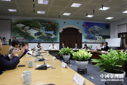 安順文化交流團(tuán)與新竹市市長(zhǎng)許明財(cái)座談。(安順市臺(tái)辦 黃凱 攝)