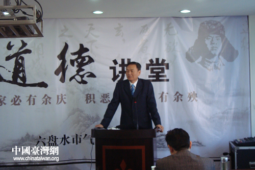中國臺灣網(wǎng)3月11日六盤水消息 日前,貴州省六盤水市臺辦配合六盤水市文明辦邀請旅居大陸的臺灣學者王毅明先生為水礦控股集團總醫(yī)院、水城高速公路管理處、六盤水市氣象局、六盤水市供電局、六盤水市地方稅務(wù)局鐘山經(jīng)濟開發(fā)區(qū)分局、六盤水市實驗一中等單位開設(shè)的“道德講堂”,為干部職工及學生講解中國傳統(tǒng)文化。