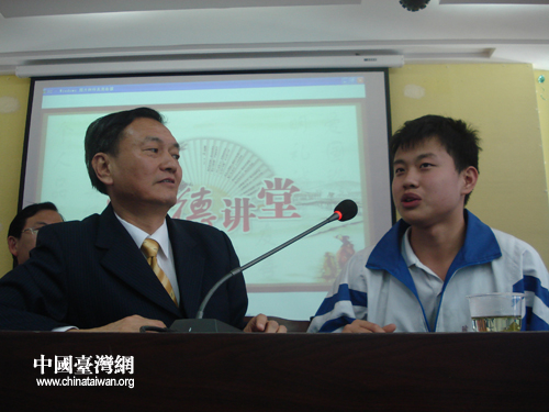 王毅明先生與六盤水市實驗一中學生互動。(圖片來源:六盤水市臺辦)