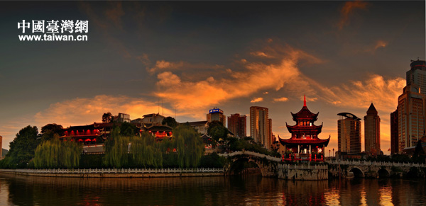 夕陽中的甲秀樓。(圖片來源:貴陽市臺辦)