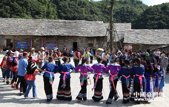 臺灣少數民族代表團在千年布依古寨高蕩村與當地布依族村民歌舞互動。布依族村民為臺灣同胞表演頭巾舞、迎客山歌等,臺灣同胞帶來賽德克族的狩獵歌和布隆族的合唱等節目。兩地少數民族還手牽手高歌“我們是一家人,永遠的一家人。”臺灣少數民族代表團考察了布依族蠟染傳統工藝,參觀高蕩村民俗文化館,發現布依族祖先用的很多農耕器具有很多相同之處,來自臺灣布隆族的伍木成先生表示,相隔遙遠的兩地少數民族生活生產上非常默契地相似,說明他們的祖先與大陸同源同種,來到高蕩看到一排排的石板房,讓他感覺又回到了家鄉。