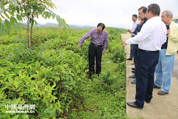 考察平塘縣光明茶場。(圖片來源:黔南州臺辦)