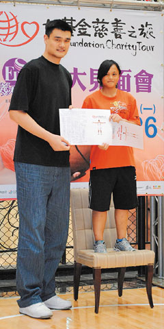 中國臺灣網7月27日消息 據臺灣《聯合報》報道,姚明26日抵臺訪問,和高雄縣“八八”水災受災戶學生會面。姚明2.26米的身高讓全場驚呼,民進黨籍高雄縣長楊秋興(綽號小巨人)更笑喻“我這個小巨人,真正面對大巨人了!”