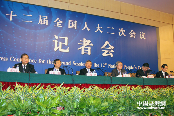全國人大二次會議新聞中心11日上午舉行記者會。中國人民銀行行長周小川,中國銀行業監督管理委員會主席尚福林,中國證券監督管理委員會主席肖鋼,中國保險監督管理委員會主席項俊波,中國人民銀行副行長、國家外匯管理局局長易綱五位嘉賓就“金融改革與發展”的相關問題回答了中外記者的提問。(中國臺灣網高斯斯 攝)