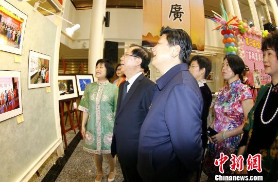 中共廣西壯族自治區委員會副書記危朝安(左二)、花蓮縣長傅崐萁(左三)一同觀展。 張秀清 攝