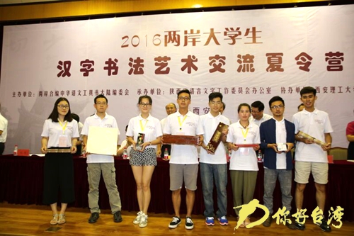 2016兩岸大學生漢字書法藝術(shù)交流夏令營同日開營。兩岸合編中華語文工具書大陸代總召集人彭興頎,臺灣總召集人、中華文化總會秘書長楊渡為兩岸營員授營旗。今年的夏令營活動是繼2014、2015年分別在浙江紹興文理學院和臺灣藝術(shù)大學成功舉辦后,由國家語委牽頭的兩岸合編中華語文工具書大陸編委會和臺灣中華文化總會繼續(xù)聯(lián)合主辦,由陜西省語委辦接力承辦、西安理工大學和陜西師范大學兩所高校協(xié)辦的。來自陜西和臺灣高校的十多所高校100名大學生將在為期8天的時間里,參加漢字書法藝術(shù)講座、書法教學、書法創(chuàng)作展示、觀摩碑林等活動,通過“體驗式交流”,了解兩岸語言文字使用和交流現(xiàn)狀,體驗兩岸語言文字與文化的“同根同源”“和而不同”,增進理解信任,共同珍惜、尊重和傳承中華優(yōu)秀語言文化,增加對中華文化的熱愛和認同。