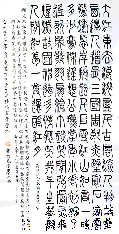 臺(tái)灣陸軍總部前署長(zhǎng)李豐池少將,以鐵線篆書寫蘇東坡詞《念奴嬌·大江東去》