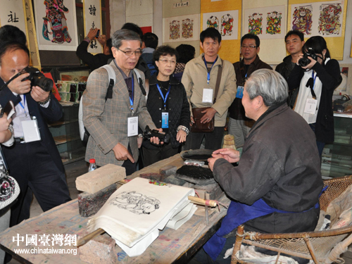 采訪團一行來到朱仙鎮,對開封非物質文化遺產木版年畫、清真寺及剪紙藝術等實地采訪拍攝,并與老藝人互動,切身感受七朝古都獨特的傳統文化魅力和開封人蓬勃向上的精神風貌。朱仙鎮木版年畫百年萬同老店第四代傳人張繼中,中國十大民間剪紙藝術家胡寶國為采訪團現場表演他們的絕活,并接受記者采訪。(中國臺灣網、開封市臺辦聯合報道)