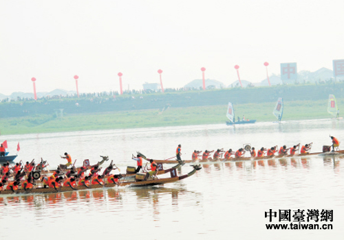 中國臺灣網6月13日岳陽消息 “節分端午自誰言,萬古傳聞為屈原”。6月10日至13日,以“中華端午情,天涯共此時”為主題的第九屆中國汨羅江國際龍舟節暨海峽兩岸中華龍舟邀請賽在湖南岳陽汨羅江隆重舉行。來自海峽兩岸的12支龍舟隊同江競技,紀念先賢屈原,歡度端午佳節。