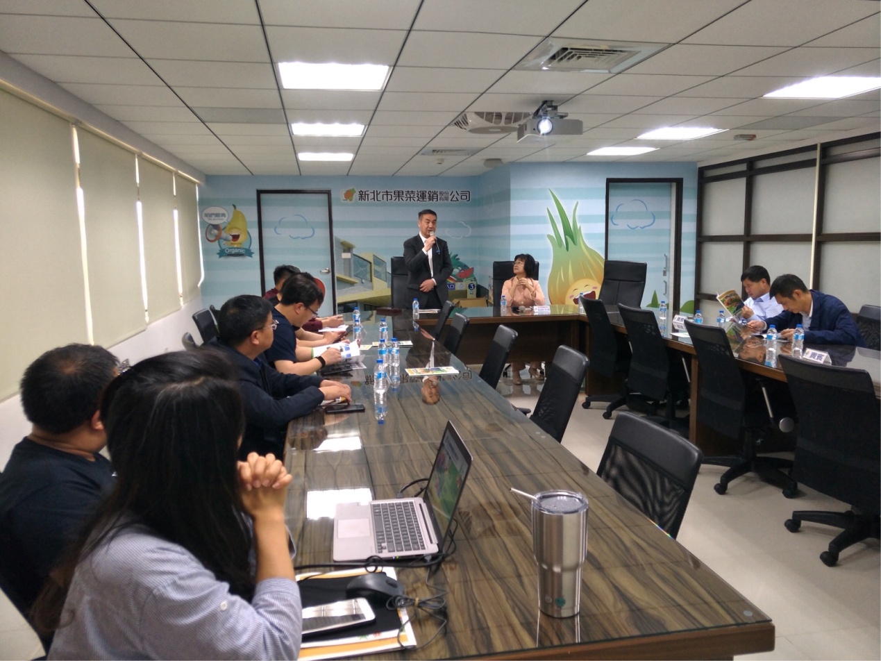 考察新北市果菜運銷股份有限公司。王常委詳細詢問了公司經營模式和管理狀況,雙方就農產品的生產及水果蔬菜營銷進行長時的交流和探討。王常委對公司拍賣竟價、嚴把質量、堅持產地直送的科學管理模式和秉持正派經營、服務農民、照顧弱小的原則贊不絕口,并誠摯的邀請公司來萬年交流與合作。