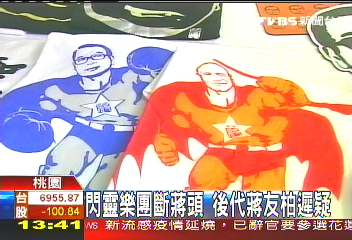 蔣介石、蔣經國的肖像印在T恤上,身體卻是肌肉猛男、緊身衣加披風,“兩蔣”變超人,蔣友柏的設計公仔再度出擊,實在很鮮。