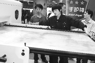 在海峽印刷展上,一位銷售代表在演示印刷機器。