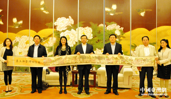 山東省臺辦主任倪明元、省商務廳廳長呂在模、青島海峽兩岸經濟文化交流協會會長徐東萌參加會見。(中國臺灣網山東省臺辦通訊員 孫培君)